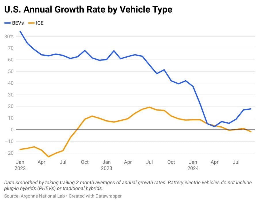At the beginning of this year, the prevailing narrative was that electric vehicle (EV) sales were slowing down. Critics argued that EVs were a passing fad, that interest was waning, and that inherent problems would prevent them from ever displacing internal combustion engine (ICE) cars without subsidies. Essentially, the claim was that the EV revolution was over or at least indefinitely stalled.